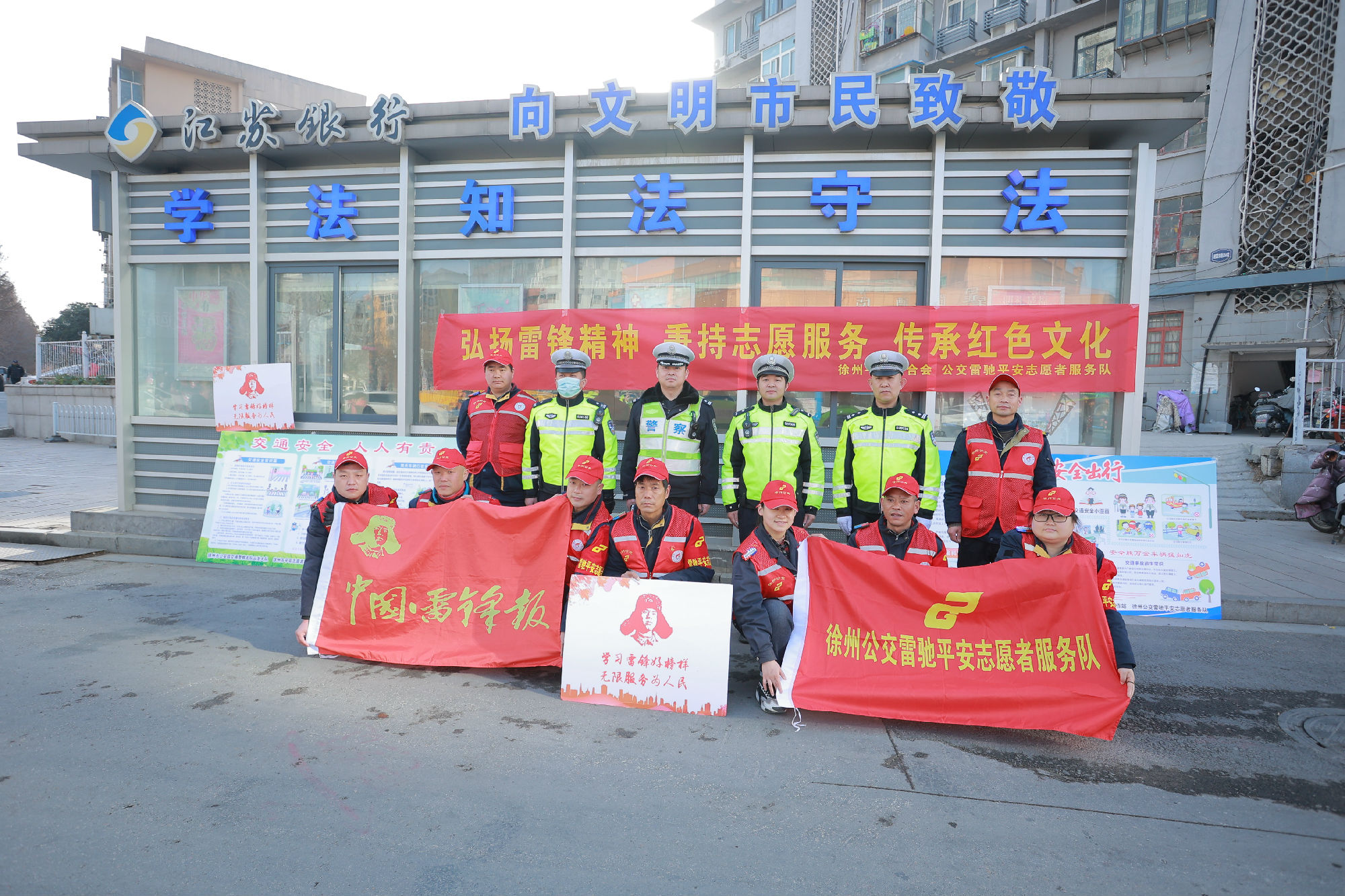 3月2日早上出行早高峰時(shí)段,徐州公交雷馳平安志愿者服務(wù)隊(duì)組織隊(duì)員們,協(xié)同交警一起在復(fù)興路與銅山路繁華交叉路口疏導(dǎo)交通。