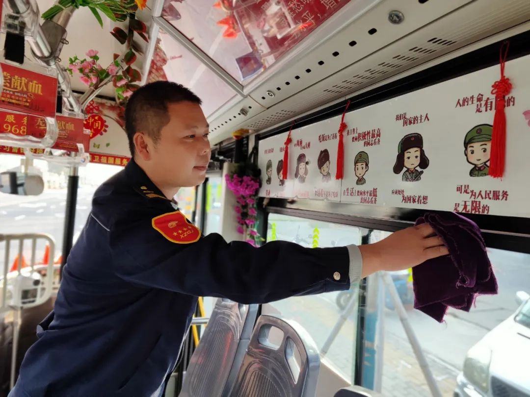 駕駛座上的王石龍雙手把住方向盤,安全平穩(wěn)駕駛著,每到一站,他都會仔細觀察乘客的上下車情況,并攙扶特需乘客坐到座位上,他用熱情的服務為乘客送去溫暖。走進王石龍的車廂,紅色的主題格外引人矚目,扶手被用紅絲絨布套包裹得嚴嚴實實,一個個的座位上整齊地放置著棉坐墊,車廂內(nèi)溫馨的感覺縈繞著乘客,感到冬日里格外的溫暖。他還自費更新了紅色小人書,放置了醫(yī)藥箱、便民袋、針線包、速效救心丸、一次性雨衣等等,細微之處彰顯了王石龍對工作的用心和對崗位的熱愛。
