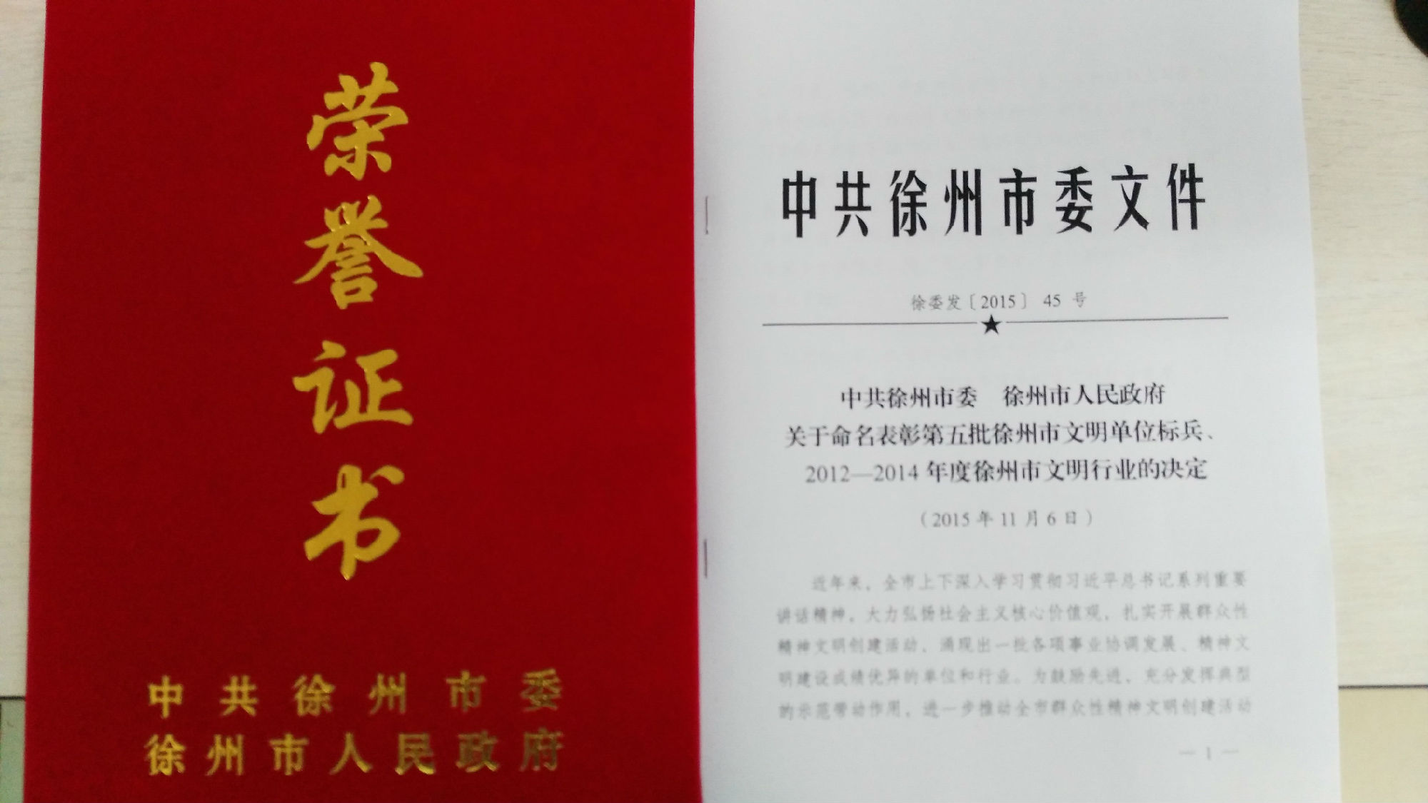 公司榮獲市2012-2014年度文明行業(yè)榮譽(yù)稱號(hào)