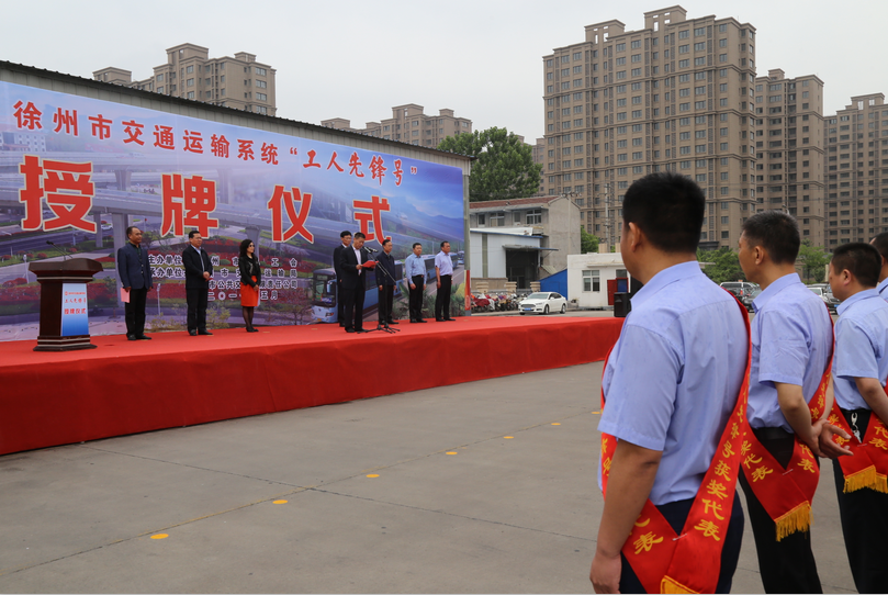 5月8日上午10點,徐州市總工會在郭莊路停保場隆重舉行徐州市交通運(yùn)輸系統(tǒng)“工人先鋒號”授牌儀式。徐州市人大副主任、市總工會主席束志明,徐州市副市長趙立群,市文明辦主任沈麗,市交通運(yùn)輸局局長蔡前鋒,市總工會副主席劉洪印、副主席潘華,市交通運(yùn)輸局工會主席王培河以及公司董事長、總經(jīng)理杜紅軍等領(lǐng)導(dǎo)出席了授牌儀式。來自公交公司、汽車客運(yùn)總站等交通運(yùn)輸行業(yè)的300余名員工參加了授牌大會。