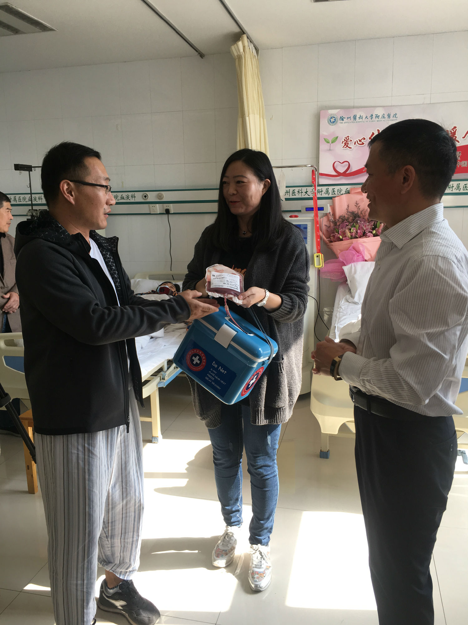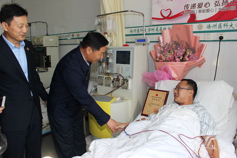 自7月底接到通知的這段時間,鄭剛一直積極配合著,希望保持最佳的身體狀態(tài)進行捐獻。他努力克制自己,戒煙戒酒,鍛煉身體,增加高營養(yǎng)的飲食調(diào)理。喝不慣牛奶的他甚至強迫著自己一天喝兩包奶。國慶節(jié)幾天,他突然感冒發(fā)低熱,竟忍著沒敢吃藥……鄭剛所在的單位也給予了大力的支持和配合,10月25日入院,徐州公交為他舉辦了隆重的歡送儀式,董事長、總經(jīng)理杜紅軍等領(lǐng)導(dǎo)給他送來了慰問金,安排好他的休息時間。