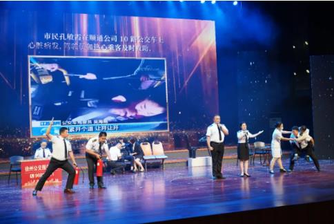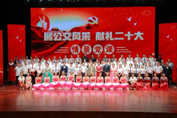 為激勵廣大黨員群眾以實際行動迎接黨的二十大勝利召開,8月10日下午,徐州公交集團成功舉辦“展公交風(fēng)采 獻禮二十大”情景黨課。市交控集團黨委委員、紀(jì)委書記胡濤,市交通運輸局宣傳教育處處長高夫健,徐州廣播電視傳媒集團總編室主任劉建玲,市公交集團外部董事,市交控集團黨建工作部、群眾工作部部門領(lǐng)導(dǎo),以及公交集團黨委班子成員、先進勞模、職工代表共450余人出席并觀看演出。