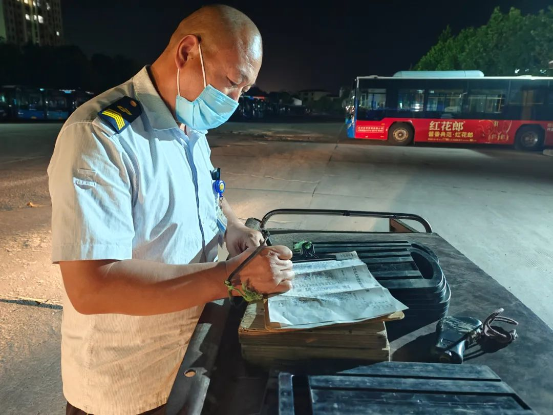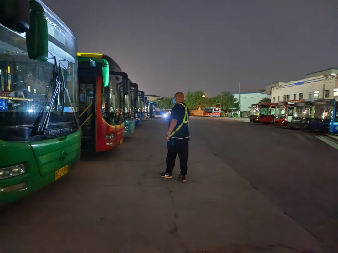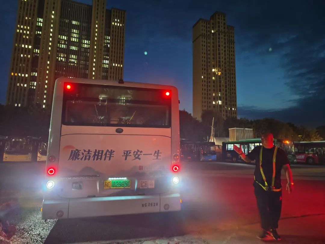 進(jìn)入丑時,許多人都已進(jìn)入夢鄉(xiāng),末班車回場,在萬籟俱靜的夜里,內(nèi)保員徐智指揮倒車,同時還要逐個檢查停車場內(nèi)的車輛擺放,匯報(bào)車輛歸場情況,確保車輛全部安全歸場。