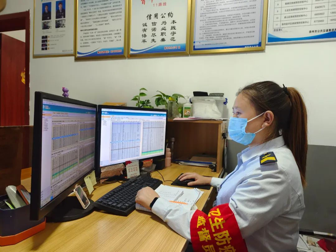 天還未亮,19路調(diào)度室里燈火通明,調(diào)度員黃靜已經(jīng)打開電腦開始了一天的工作,駕駛員陸續(xù)到達(dá),車隊(duì)運(yùn)管員鄒晶一邊叮囑著駕駛員安全注意事項(xiàng),一邊對其進(jìn)行酒精測試,一切井井有條,忙而不亂。首班車駕駛員紀(jì)彤仔細(xì)檢查車況、消毒、通風(fēng)等情況,車上、車下絲毫不敢疏忽,做好出車前的準(zhǔn)備。